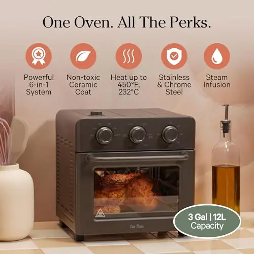 Our Place Wonder Oven & Essentials Kit | 6-in-1 Air Fryer Toaster Oven with Steam Infusion | Countertop Convection Oven Combo with Extra Bake Pan & Air Fryer Basket | Non-toxic, PFAS-Free Duo | Char