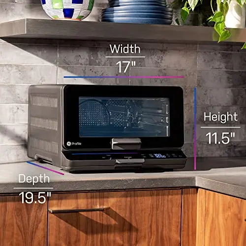 GE Profile Smart Oven with No Preheat, 11-in-1 Countertop Oven including Air Fry, Warm, Toast, Broil, Roast, Pastry, Reheat, and more, WiFi and Smart Connected, Black (Renewed)