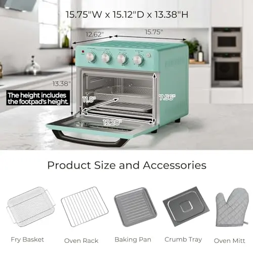 GE Mechanical Air Fryer Toaster Oven + Accessory Set | Convection Toaster with 7 Cook Modes | Large Capacity Oven - Fits 12" Pizza | Countertop Kitchen Essentials | Stainless Steel