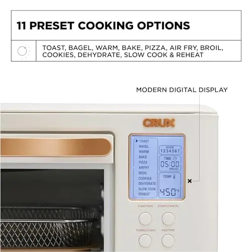 Sur La Table SLT-1832 French Door Air Fryer Toaster Oven Smart AI Cooking 8 Functions Air Fry Bake Toast Broil Dehydrate Pizza Warm Preheat 24H Timer 400°F Temp 13" Pizza 9-Slice Capacity