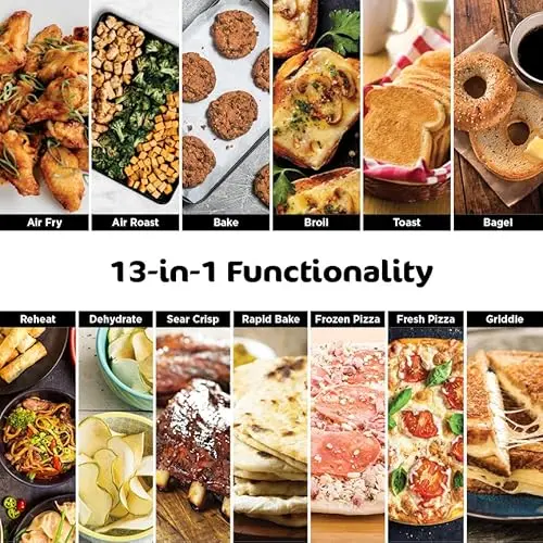 Ninja, Toaster Oven, Air Fryer, Thermometer, Toaster Oven Air Fryer Combo, Stainless Steel, Quick meals, Fries, Frozen Food, Air Fry, Dehydrate, Reheat, 13-in-1,Less Oil, Flip Away Oven, Foodi, SP351