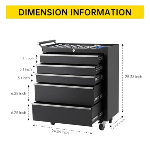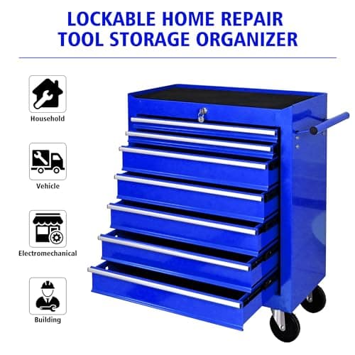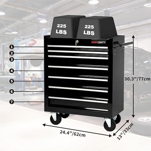 Maxority 7-Drawer Heavy-Duty Rolling Tool Chest Cabinet with Lock Mobile Cart for Garage & Workshop, Black