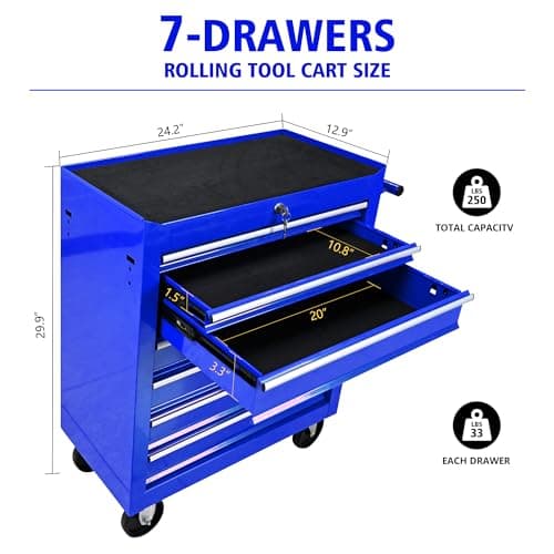 BouPower Rolling Tool Chest, 7-Drawer Rolling Tool Box with Interlock System and Wheels for Garage, Warehouse, Workshop, Repair Shop