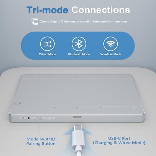 Tacti Trix Wireless Bluetooth Trackpad for Windows 10/11, Supports 3 Connection Modes, High-Precision Multi-Gesture Touchpad, Compatible with PC Laptop Computer