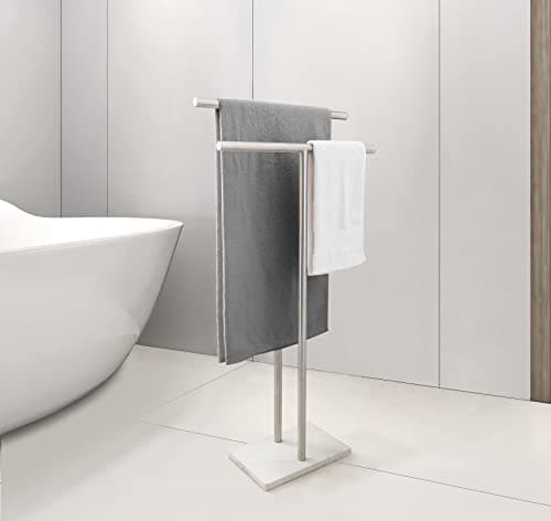 KES Standing Towel Racks for Bathroom 2-Tier, Floor Towel Rack Stand with Heavy Marble Base, Upgrade Steady Freestanding Design, Pro-Grade 18/8 Stainless Steel Brushed Finish, BTH217-2
