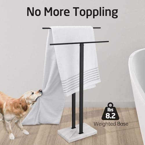 40 Inch Freestanding Towel Rack for Bathroom Floor Double-T Shape Bath Sheet Holder with Marble Design Base Standing Towel bar Next to Tub or Shower Towel Holder Stand SUS304 Matte Black
