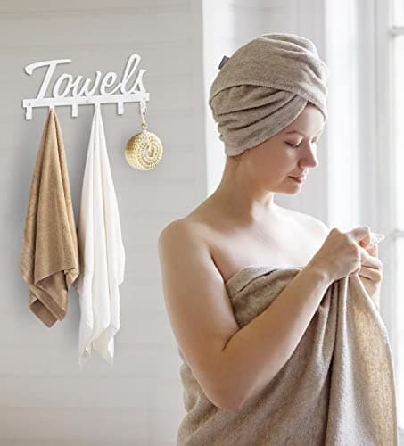Livelab Towel Rack, Towel Racks for Bathroom Wall Mounted, 6 Hooks White Towel Holder for Bathroom Space Saving, Waterproof Rustproof Easy Install Towel Hanger for Bathroom, Pool, Living Room