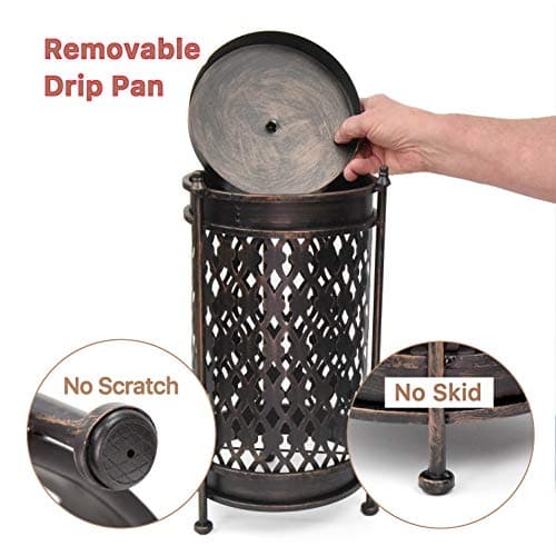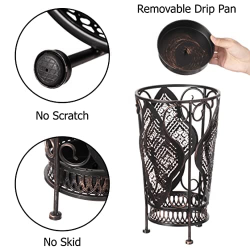 Brelso Super Quality Umbrella Stand, Umbrella Holder, Antique Look Metal, Entry Hallway Décor, Round Style, w/Removable Drip Tray. (Gold-Brown)
