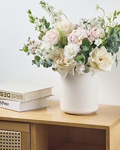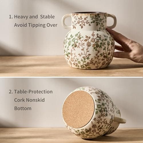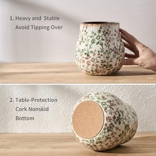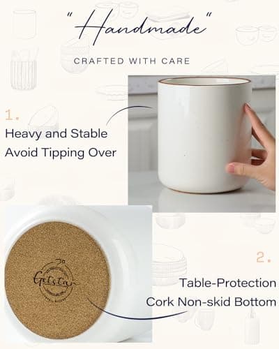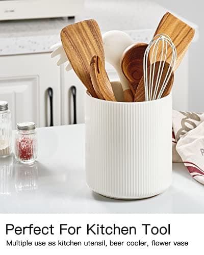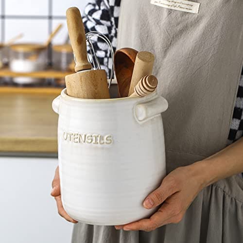 DOWAN Kitchen Utensil Holder, Utensil Holder for Countertop, Utensil Crock with Table-Protection Cork Mat, Handmade DIY Gifts, Farmhouse Kitchen Decor, Cream White