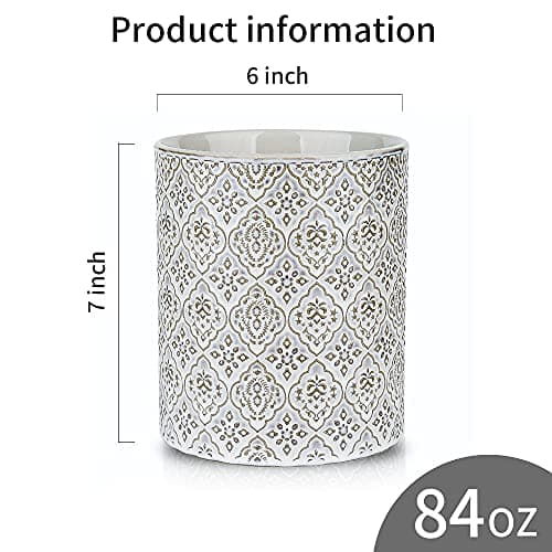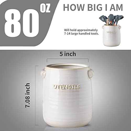 BETTWILL Kitchen Utensil Holder,White Ceramic Utensil Holder,Large Ceramic Utensil Holder Crock for Kitchen Counter, Large Stable Utensil Crock, Farmhouse Cooking Utensil Holder.