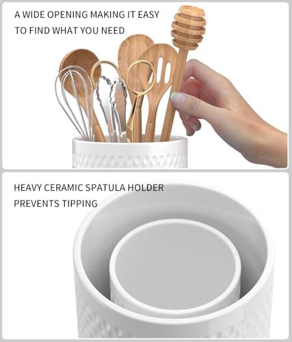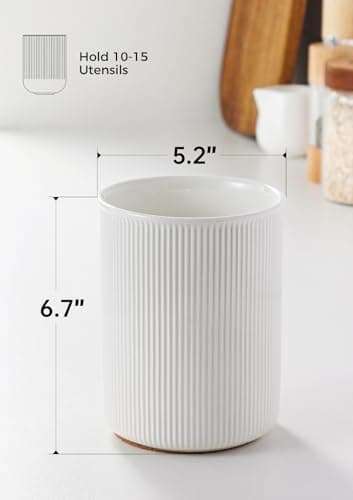 LE TAUCI Utensil Holder for Kitchen Counter, 7.3"+5.4" Fluted Ceramic Utensil Crock Organizer for Countertop, Heavy Large Holder for Spatulas, Spoons, Set of 2, White, Kitchen Counter Decor