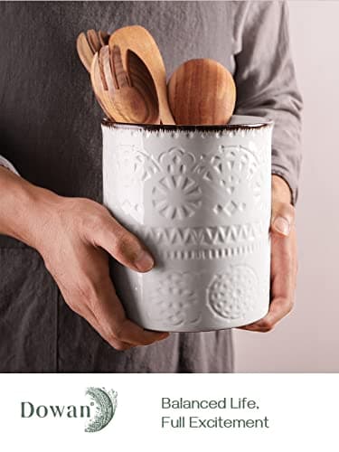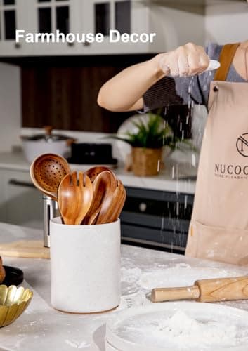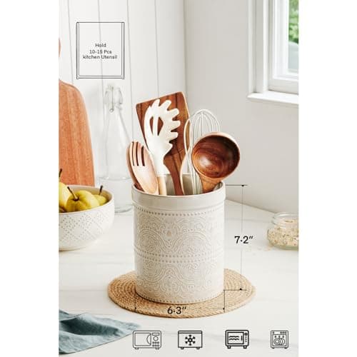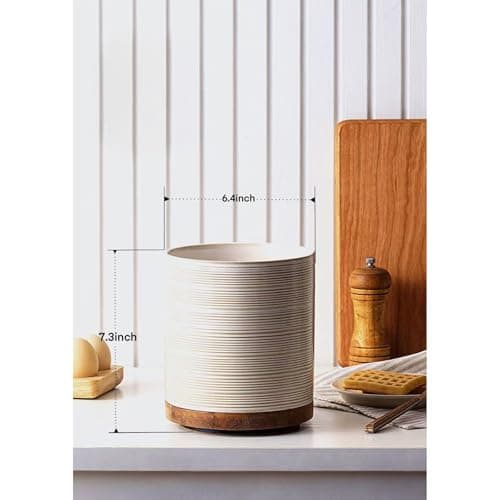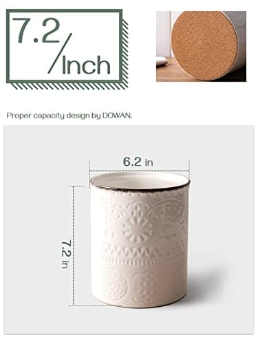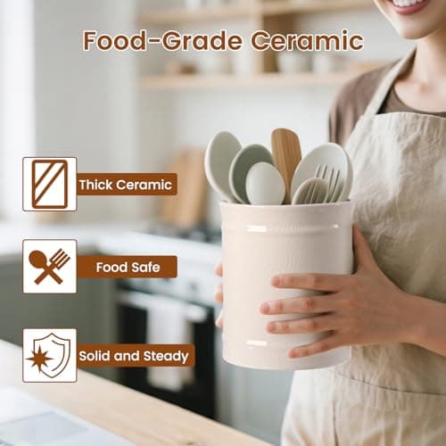 Nucookery Utensil Holder, 6.4" Ceramic Kitchen Utensil Holder for Countertop with Protection Cork Bottom, Vintage Farmhouse Kitchen Decor for Counter, Gift (Sand)