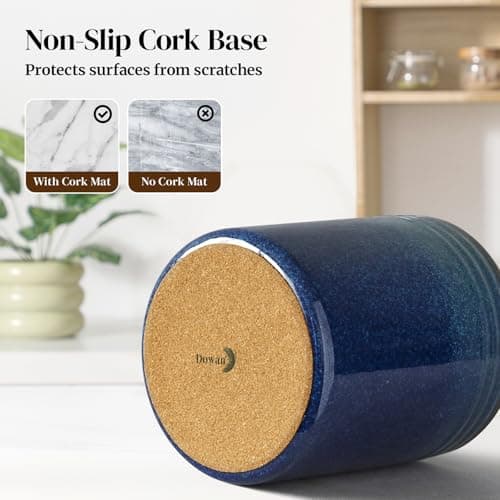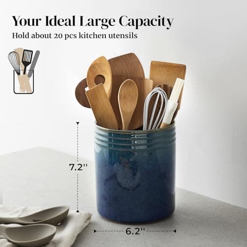 DOWAN 360° Rotating Extra Large Cooking Utensil Holder, 7.6" Kitchen Utensil Holder for Countertop, Utensil Crock for Farmhouse Kitchen Decor, Ceramic Stable Utensil Caddy, Blue