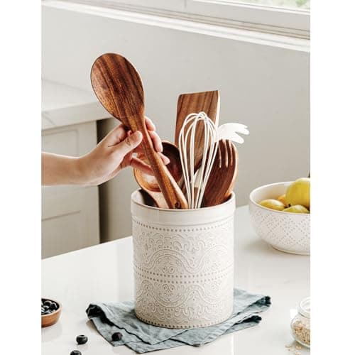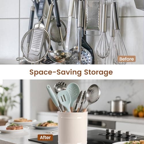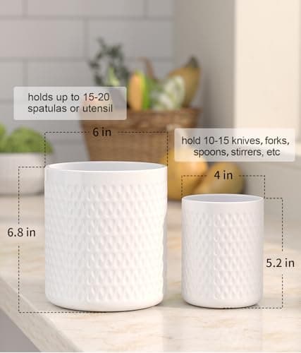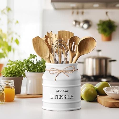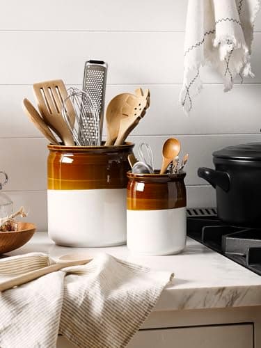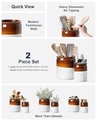 Utensil crocks break into a few clear shopping lanes once the broad product type is out of the way. Some buyers want the biggest holder that can keep spatulas, whisks, and serving spoons upright, which makes Large Utensil Crocks, Extra-Large Utensil Crocks, and Best Utensil Crocks for High Capacity the fastest starting points. Others are choosing between looks and finishes first, so pages like Farmhouse and Rustic Utensil Crocks, Modern and Minimal Utensil Crocks, and Vintage Utensil Crocks remove more noise than a full-category browse.