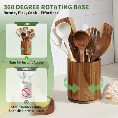 Material and setup matter too. Metal Utensil Crocks, Wood Utensil Crocks, and Plastic and Acrylic Utensil Crocks speak to cleanup feel and countertop style, while Weighted and Anti-Slip Base Utensil Crocks and Rotating Utensil Crocks solve stability or access problems first. If the main question is how the holder fits your kitchen routine, the best first clicks are usually Daily Cooking, Display Decor, or Small Kitchens.