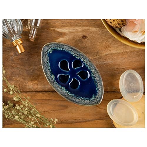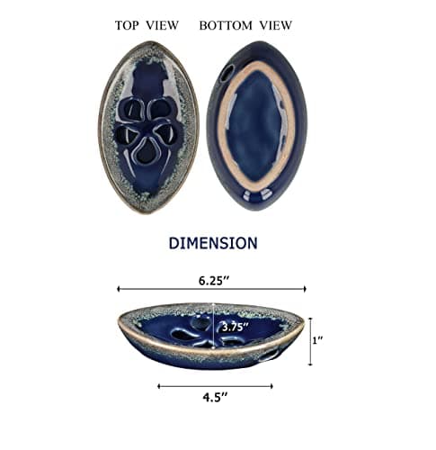 LungMongKol Shop Ceramic Soap Dish with Self Draining Tray for Bar Soap, Bathroom, Kitchen (Blue)