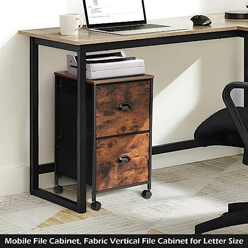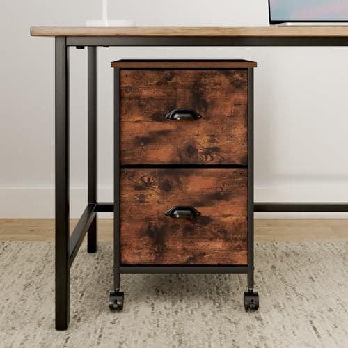 VASAGLE 2-Drawer File Cabinet, Small Rolling Filing Cabinet for Home Office, Printer Stand, for A4, Letter-Size Documents, 15.7 x 16.5 x 27.6 Inches, Rustic Brown and Ink Black UOFC040B01