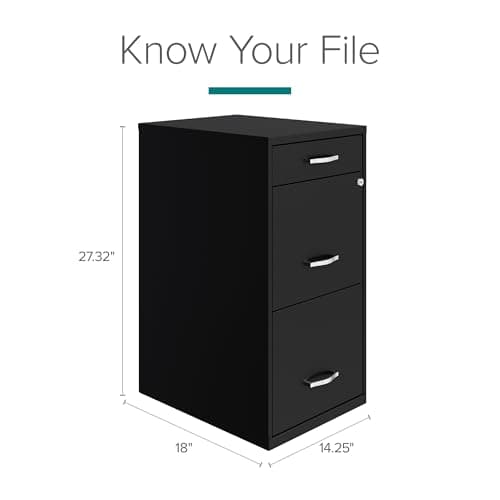 Hirsh Industries Space Solutions 18in Deep 3 Drawer Metal Organizer File Cabinet Black, Letter Size, Fully Assembled