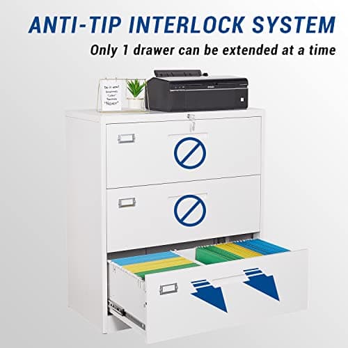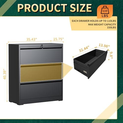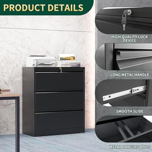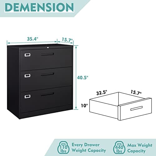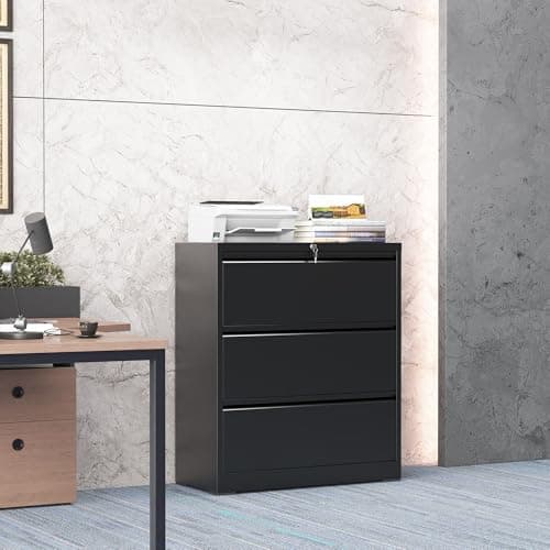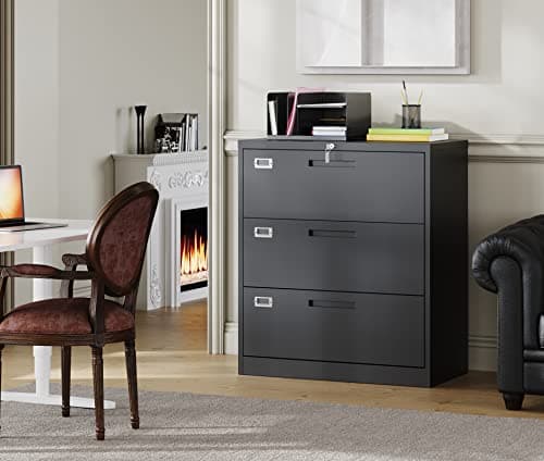 Fesbos Lateral File Cabinet with Lock, 3 Drawer Large Metal Filing Cabinet,Home Office Lockable Storage Cabinet for Hanging Files Letter/Legal/F4/A4 Size-Assembly Required