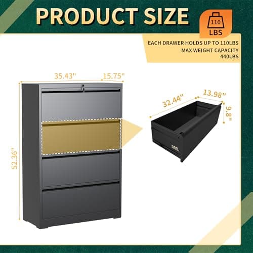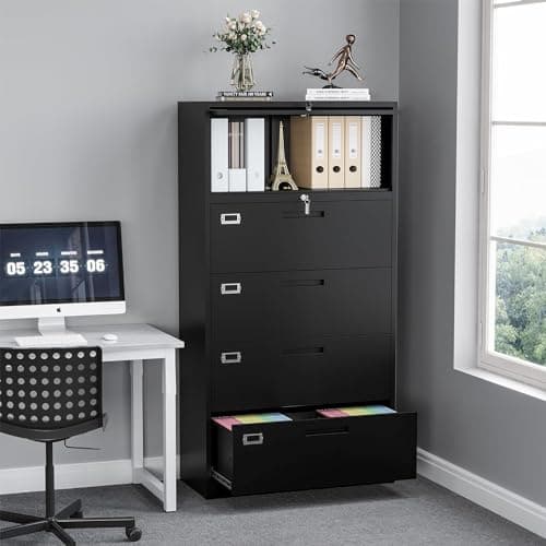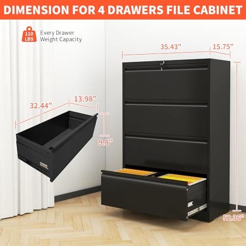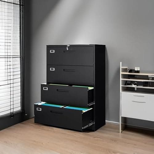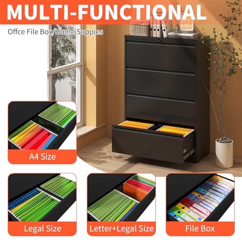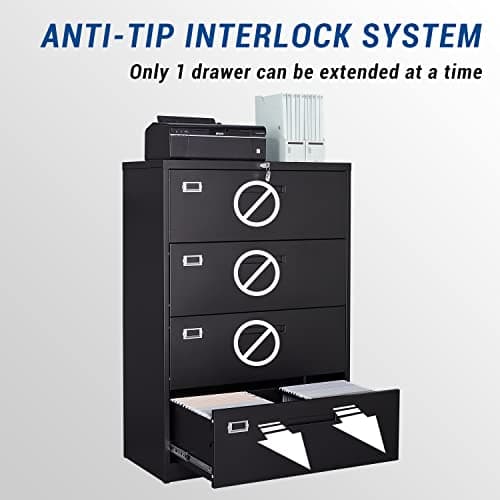 Fesbos Lateral File Cabinet with Lock, 4 Drawer Large Metal Filing Cabinet,Home Office Lockable Storage Cabinet for Hanging Files Letter/Legal/F4/A4 Size-Assembly Required