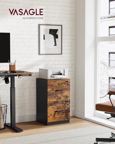 VASAGLE File Cabinet for Home Office, 2-Drawer Filing Cabinet with Lock, Open Shelf, Printer Stand, for A4 and Letter Sized Files, Adjustable Feet, Industrial, Rustic Brown and Ink Black UOFC045B01