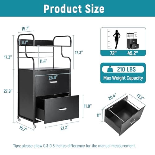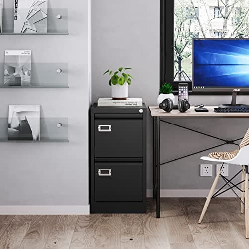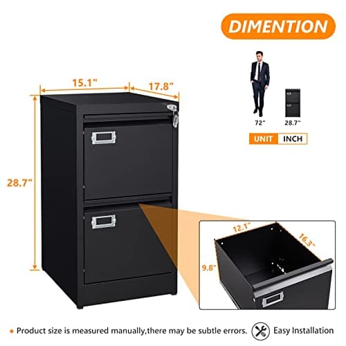 SUXXAN 18 Deep 2 Drawer File Cabinet, Metal Vertical File Storage Cabinet with Lock, Office Home Steel File Cabinet for A4 Letter/Legal Size, Assembly Required(Black)