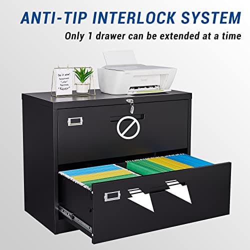 Fesbos Lateral File Cabinet with Lock, 2 Drawer Large Metal Filing Cabinet,Home Office Lockable Storage Cabinet for Hanging Files Letter/Legal/F4/A4 Size-Assembly Required
