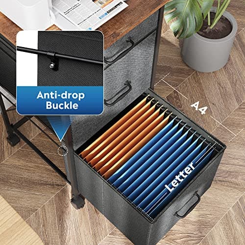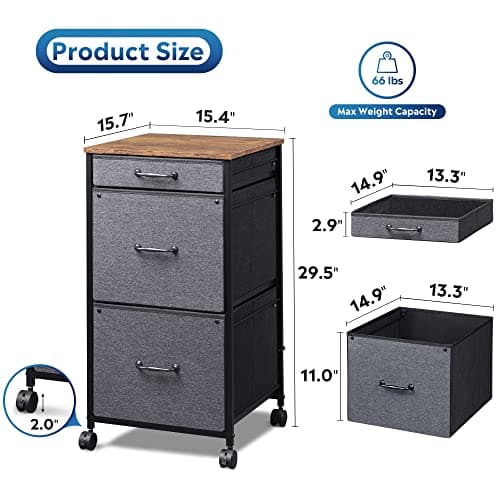 DEVAISE Mobile File Cabinet, Rolling Printer Stand with 3 Drawers, Fabric Vertical Filing Cabinet fits A4 or Letter Size for Home Office, Rustic Brown Wood Grain Print