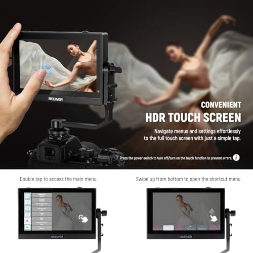 NEEWER F700 7" Camera Field Monitor, 2000nit HD 1920x1080 IPS Touch Screen with 3D LUT, 4K HDMI Loop in/Out with Peak Focus DSLR Video Assist HDR Waveform, Cold Shoe Mount, 2 NP-F750 Batteries & Cable