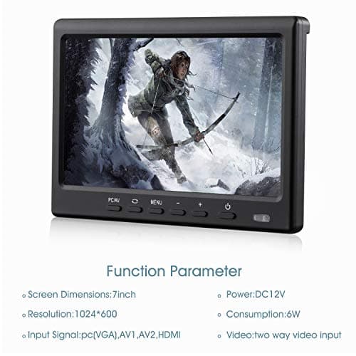 BOLEVIC 7inch HD LCD Monitor, IPS 1024X600 Resolution Screen, Car Rearview Cameras Monitor with HDMI VGA, 2 Video Input for Backup Camera for Car DVD VCR PC Laptop Raspberry Pi