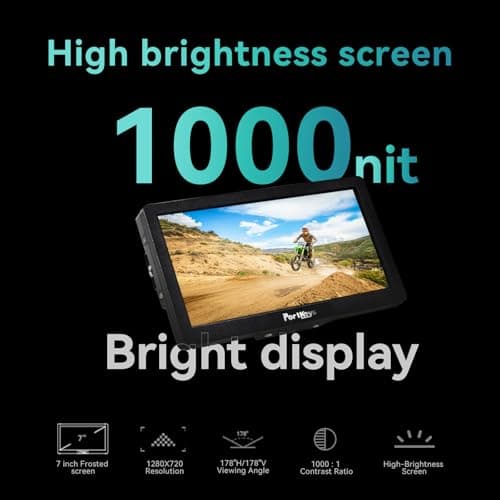 Portkeys HD7H 1000nit DSLR Camera Field Monitor 7 Inch 1280x720 IPS Camera Monitor Support 4K30p HDMI Input with Top Shortcut Keys and Sunshade