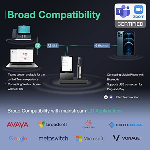 Yealink WH67 Wireless DECT Headset Teams Certified, Office Single Ear (Mono) Headset Connect to Desk Phone and PC via USB, Cell Phone via Bluetooth, Speakerphone,7 Hrs Talktime,394 ft Wireless Range