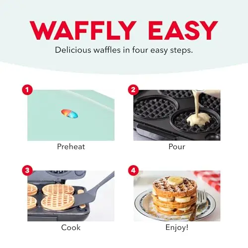 Dash Mini Waffle Maker- Compact Electric Iron for Creative Homemade Treats - Nonstick Surface - Easy-to-Clean - Perfect for Kids & Families - Red