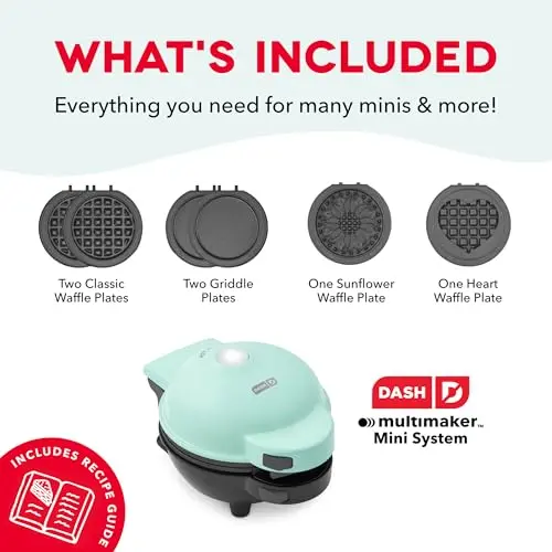Dash Mini Waffle Maker- Compact Electric Iron for Creative Homemade Treats - Nonstick Surface - Easy-to-Clean - Perfect for Kids & Families - Aqua