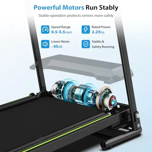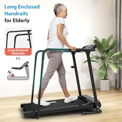 CIIHI Walking Treadmill for Senior - Foldable Senior Treadmill with 300 lbs Capacity and Long Handrails - Home Recovery Fitness Exercise Machine for Elder with Heart Rate Monitor