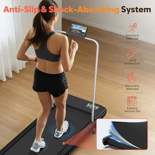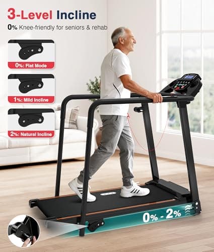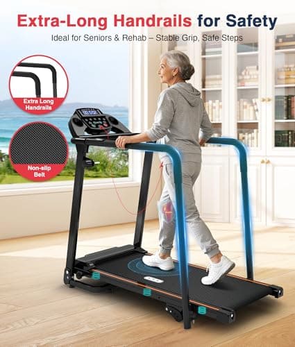 This refinement is for seniors who want steady daily movement, recovery walks, or safe light exercise at home. Compared with the overall walking pad category, these picks put balance aids and ease of use ahead of top speed or ultra-compact footprints. The trade-off is a bulkier deck and lower max pace, which is fine if jogging isn’t the goal. If you plan to walk while typing, see the desk work option for slimmer profiles and under-desk controls. For most households, a value to mid-range model with handrails and a wider belt hits the sweet spot.