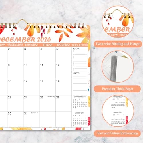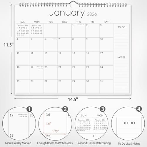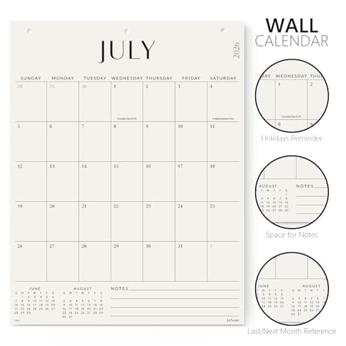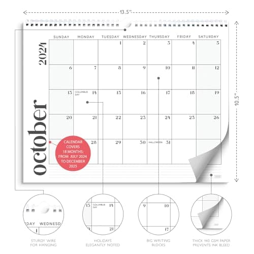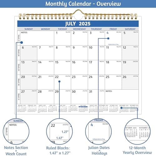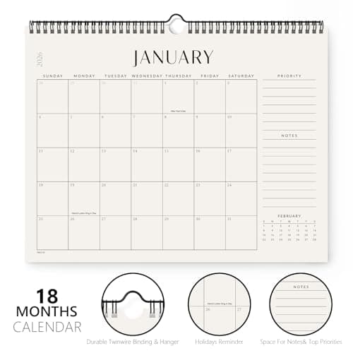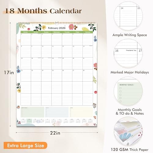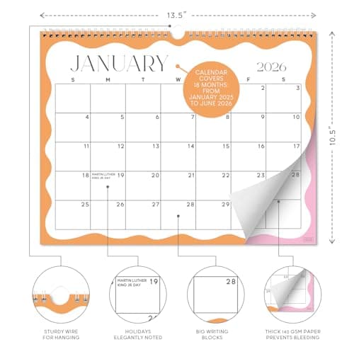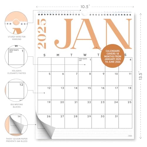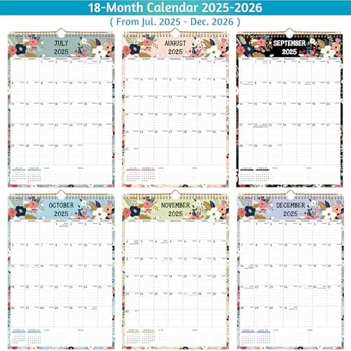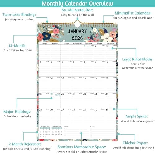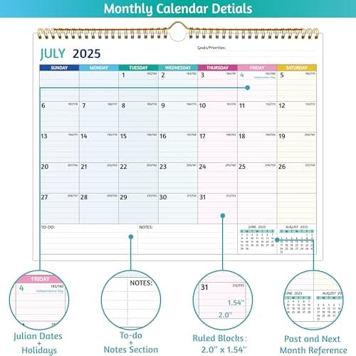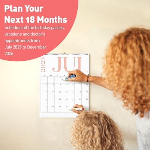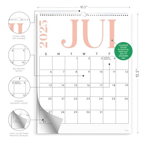 Wall Calendar 2025-2026 – Jul.2025 - Dec.2026, Calendar 2025-2026 Wall, 18 Monthly Calendar, 12 x 17 In, 2026 Calendar with Large Blocks, Thick Paper, Holidays, To-do & Notes, Great for Organizing