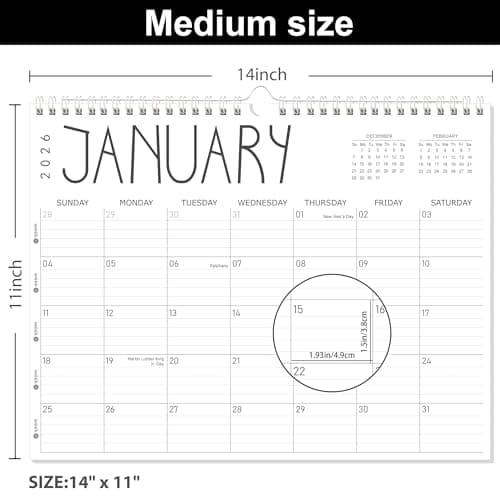 Wall Calendar 2025-2026 – 2 Year Calendar 2025-2026, 11 x 8.5 In, Jan 2025 - Dec 2026, 2025 Calendar 24 Months, Small Monthly Calendar 2025, with Ruled Blocks, Thick Paper, Holidays, To-dos & Notes