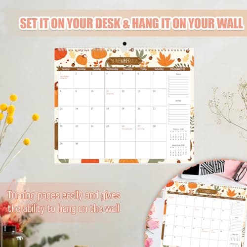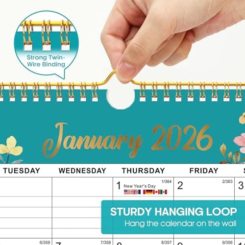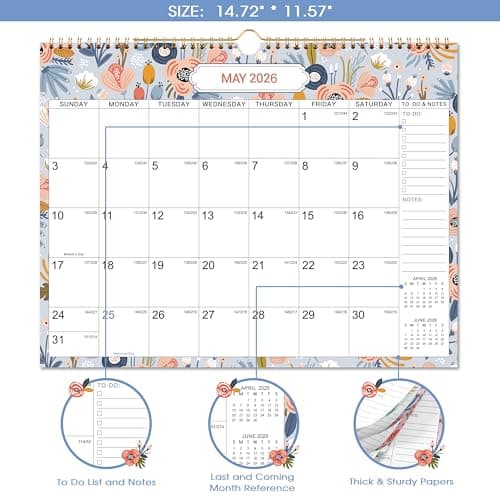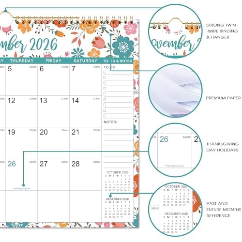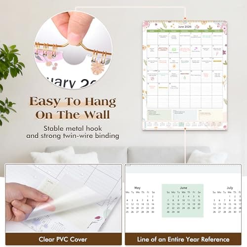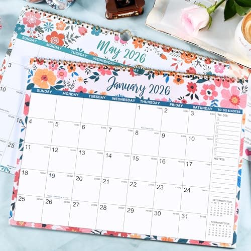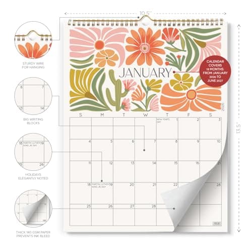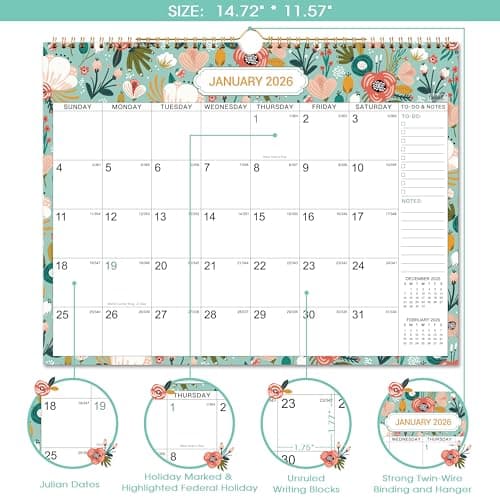 Calendar 2025-2026, Monthly Wall Calendar from January 2025 to June 2026, 11.5" x 14.7", Spiral Binding Hanging Wall Calendar, Perfect for Home or Office, Floral