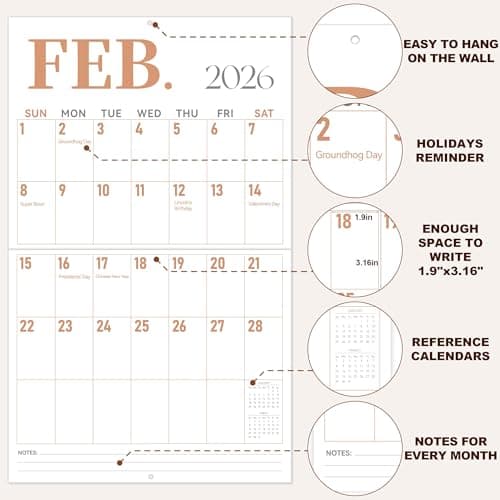 A comprehensive comparison of the 54 best Best wall calendar for Large Writing Space products. Top brands include GuassLee, Taja and ZICOTO. Based on our analysis, the highly-rated option is Wall Calendar 2025-2026 – 2 Year Calendar 2025-2026, 11 x 8..... These rankings are based on real-world performance, user reviews, and value for money.