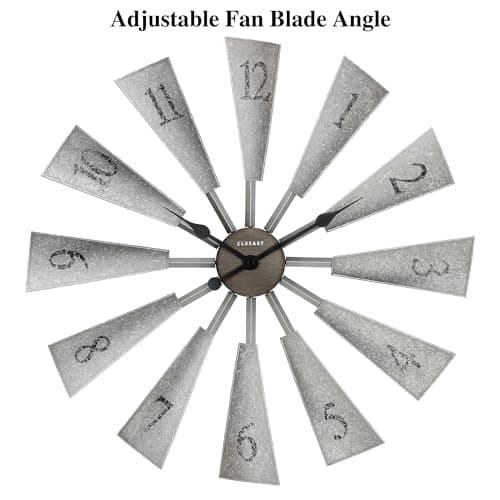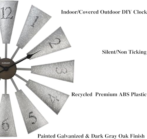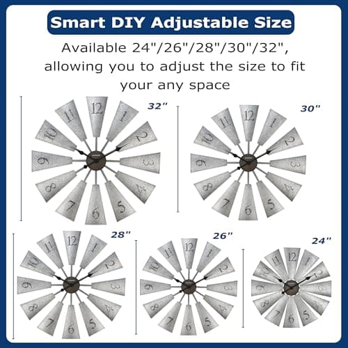 CLXEAST 30 Inch Large Farmhouse DIY Windmill Decor Wall Clock, Adjustable Size 24"/26"/28"/30"/32", 24 Inch Wall Clock for Living Room Decor,Wall Art Decor, Galvanized Plastic