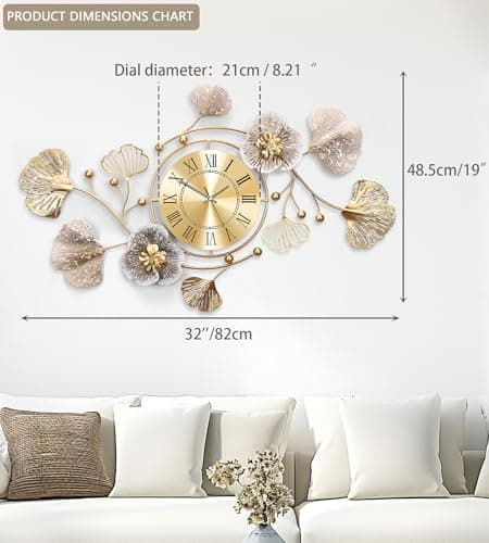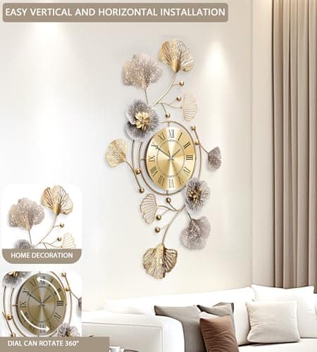 VANGOLD Giant Wall Clock for Living Room Decor, Decorative Wall Clocks Battery Operated (Gold Wall Decor)