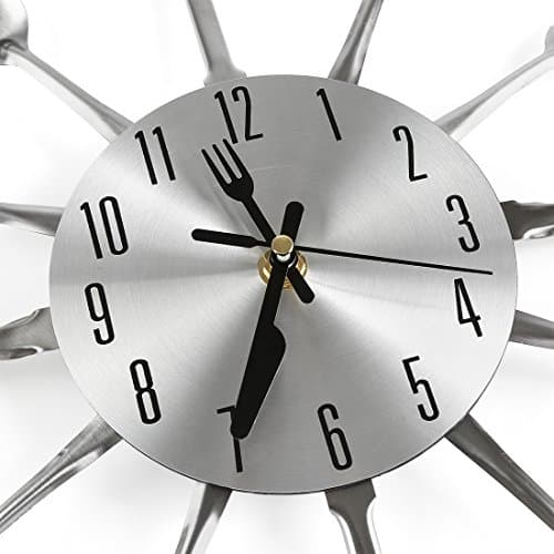 CIGERA 16 Inch Cutlery Kitchen Wall Clocks with Fork and Spoon Dial, Silent Clock Movement and Battery Operated, Great Wall Decor and Housewarming Gifts