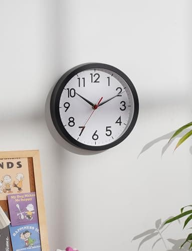 AKCISOT Wall Clock, Modern Small Wall Clocks Battery Operated 8 Inch, Silent Non-Ticking Analog Classic for Office, Home, Bathroom, Kitchen, Bedroom, School(Black)