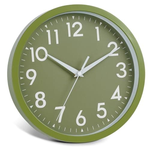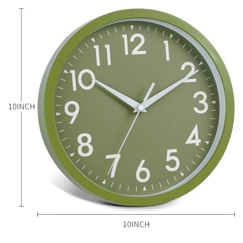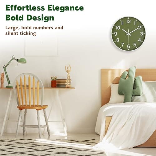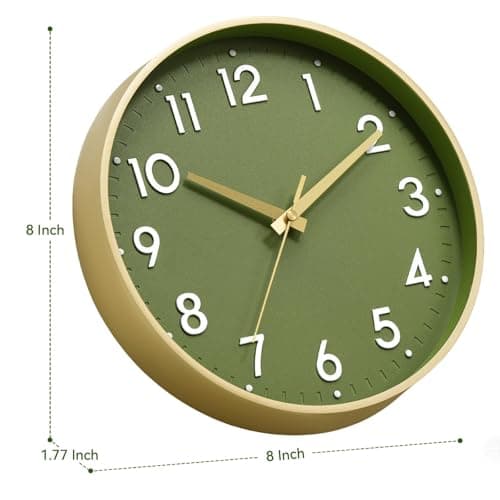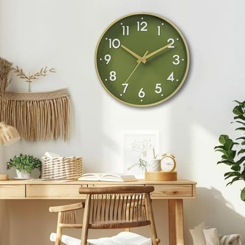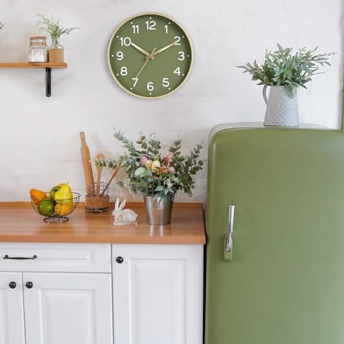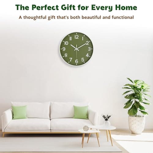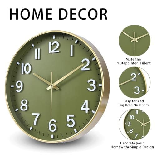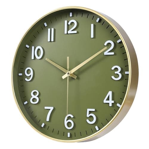 HZDHCLH Wall Clocks Battery Operated,12 inch Silent Non Ticking Modern Wall Clock for Living Room Bedroom Kitchen Office Classroom Decor (Olive Green and Gold)
