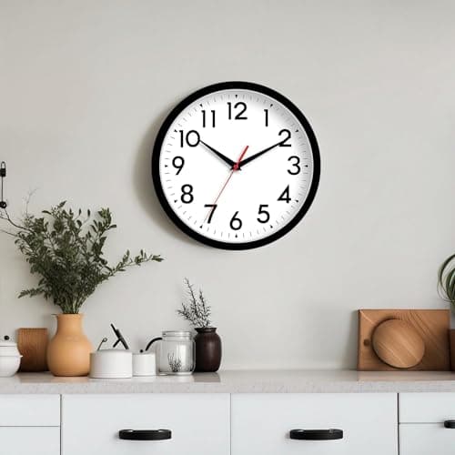 Bernhard Products Black Wall Clock Silent Non Ticking 10 Inch Quality Quartz Battery Operated Round Easy to Read Home/Office/Kitchen/Classroom/School Clock Sweep Movement