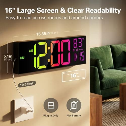 ![Digital Wall Clock with Large LED Display, Date, Temperature, Auto-Brightness | Small [PLUG-IN] Clock | Modern Electric Wall Clock for Bedroom, Classroom, Living Room, Home, Office, Farmhouse - Blue](/essentials/_next/image?url=https%3A%2F%2Fm.media-amazon.com%2Fimages%2FI%2F41gZ6WdW%2B8L._SL500_.jpg&w=3840&q=75)