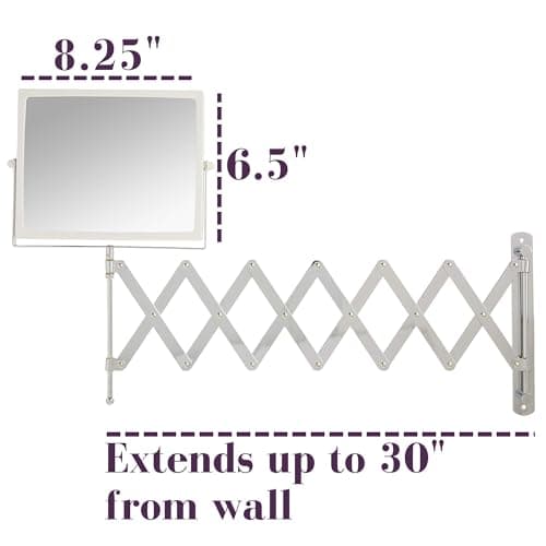 Rocollos Rechargeable Wall Mounted Lighted Makeup Mirror Chrome, 8 Inch Double-Sided LED Vanity Mirror 1X/10X Magnification,3 Color Lights Touch Screen Dimmable 360ยฐSwivel 13 Inch Extendable