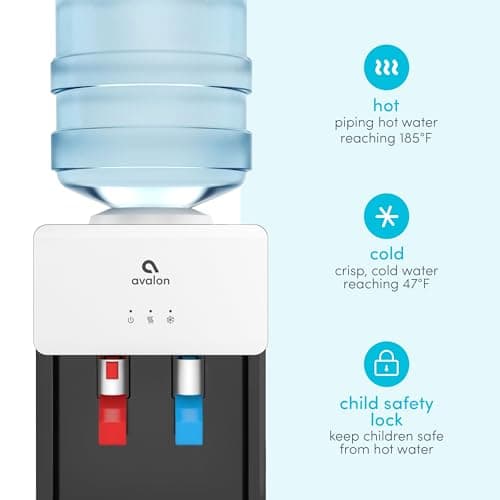 Avalon Premium Hot/Cold Top Loading Countertop Water Cooler Dispenser With Child Safety Lock. UL Listed- Black