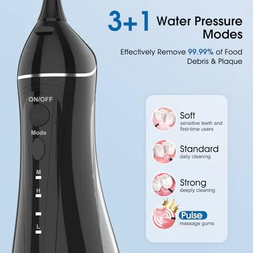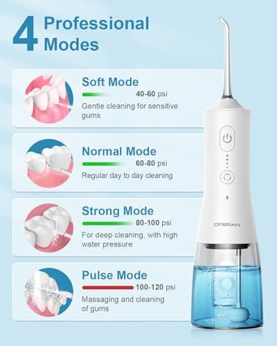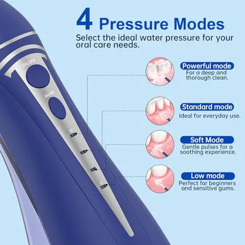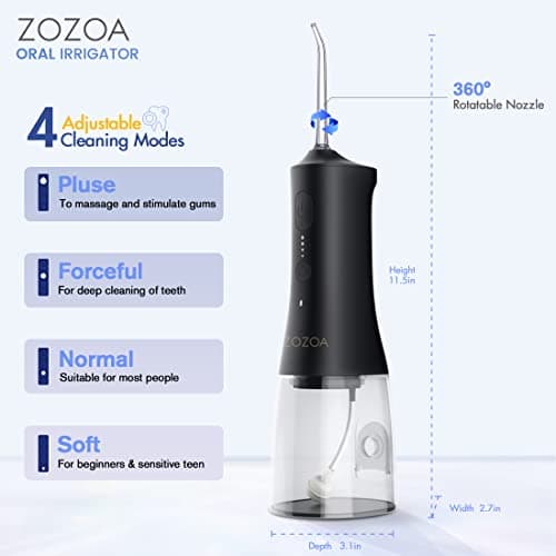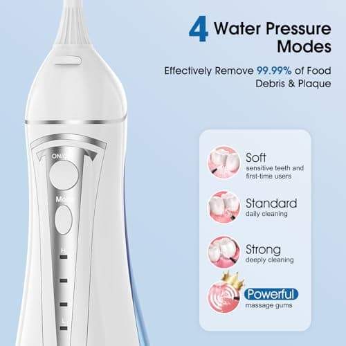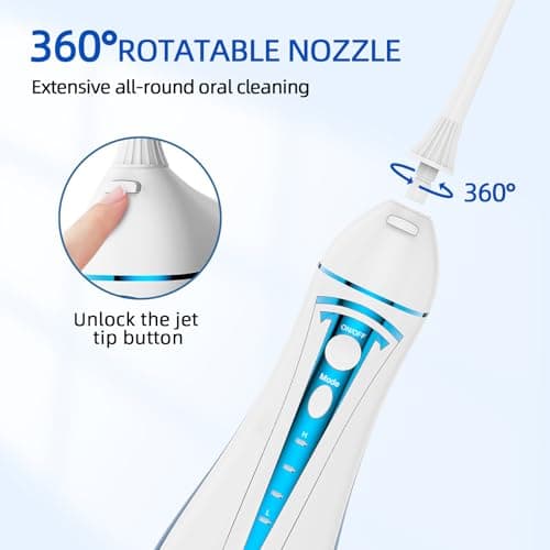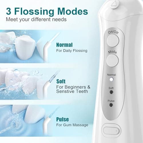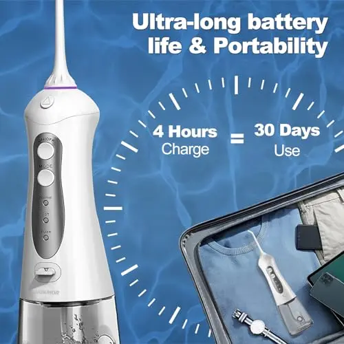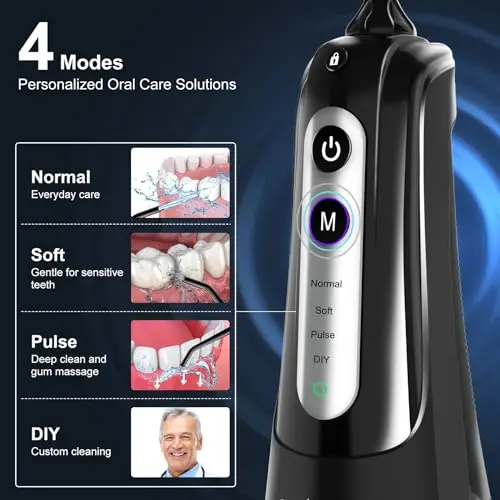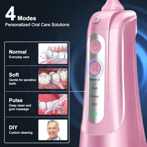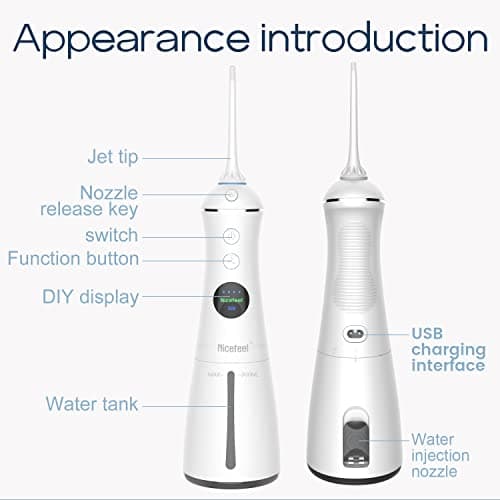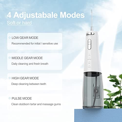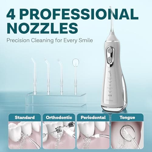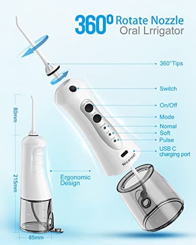 Nicwell Water Dental Flosser Pick for Teeth: 4 Modes 300ml Cordless Portable Rechargeable Oral Irrigator IPX7 Waterproof Cleaner Pik Deep Cleaning Flossing Pic Machine for Home Travel